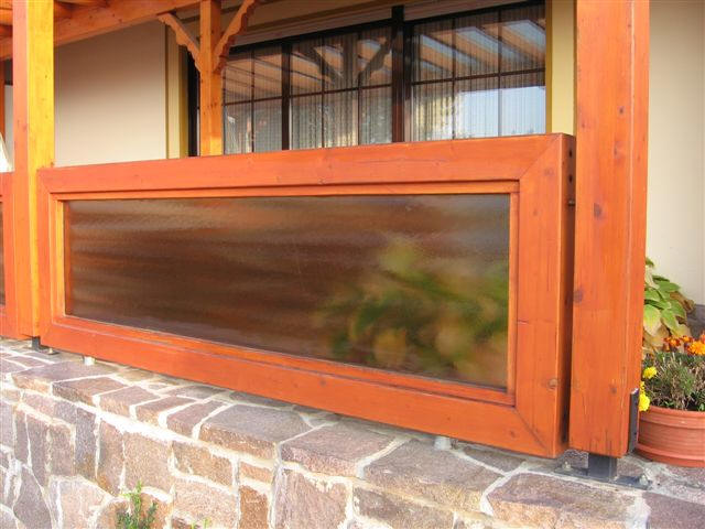 Geländer: teilweise PLEXIGLAS und Holz, und teilweise nur Holz